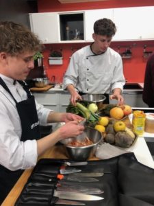 Yann Pontacq et Méven Hériault (étudiants en 2ème année de BTS MHR option cuisine) ont participé à 2 ateliers culinaires autour du filet mignon et du pigeon pour l’enregistrement de l’émission « Bien dans votre assiette » qui sera diffusée sur TEBEO très prochainement.