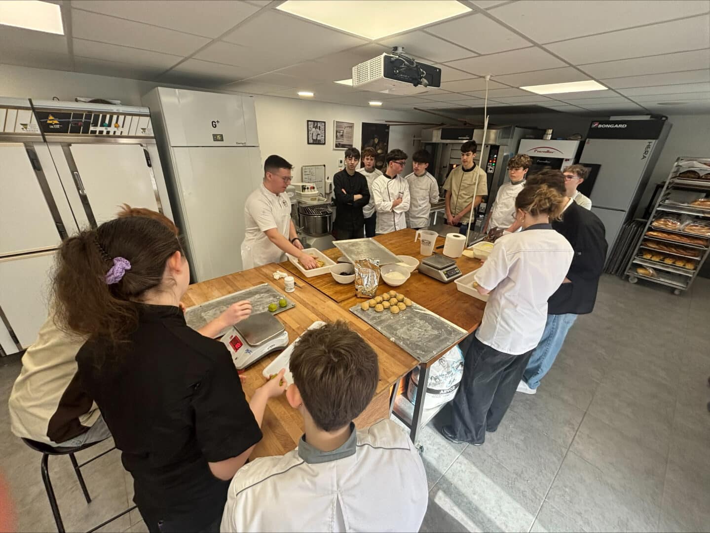 La visite s’est poursuivie avec un moment particulièrement apprécié : une démonstration réalisée par Victor LEROUGE, champion de France de viennoiserie.