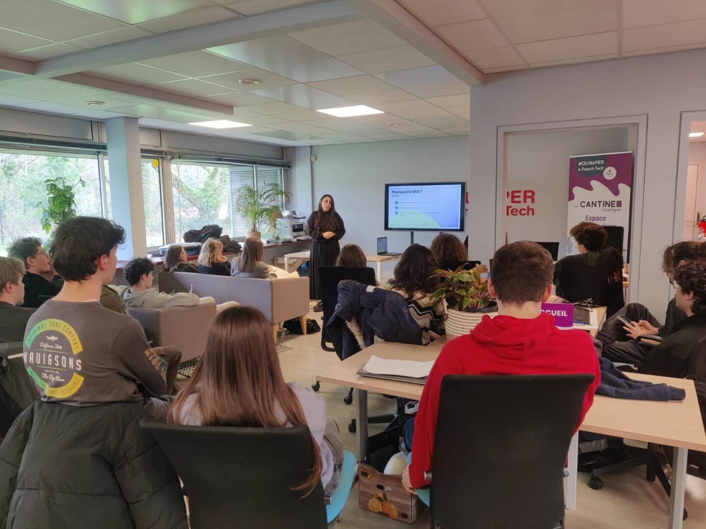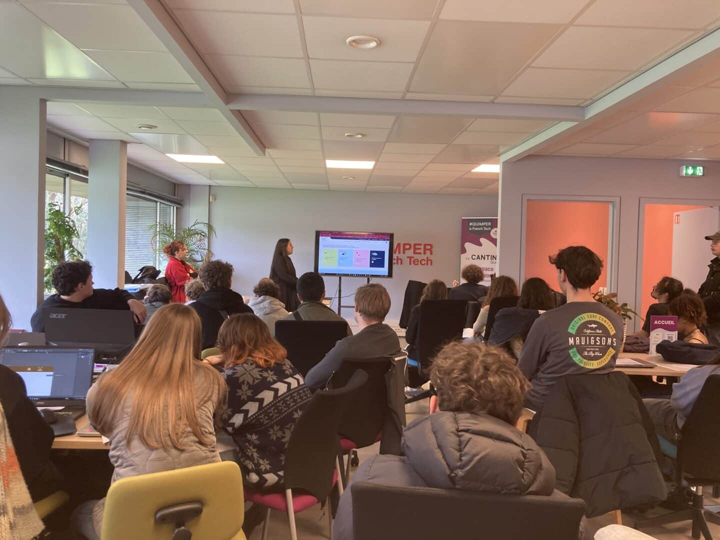 Le tout s’est déroulé dans les locaux inspirants de La Cantine Quimper, un espace de coworking qui accueille startups, développeurs, designers, entrepreneurs et maintenant… nos étudiant·es !