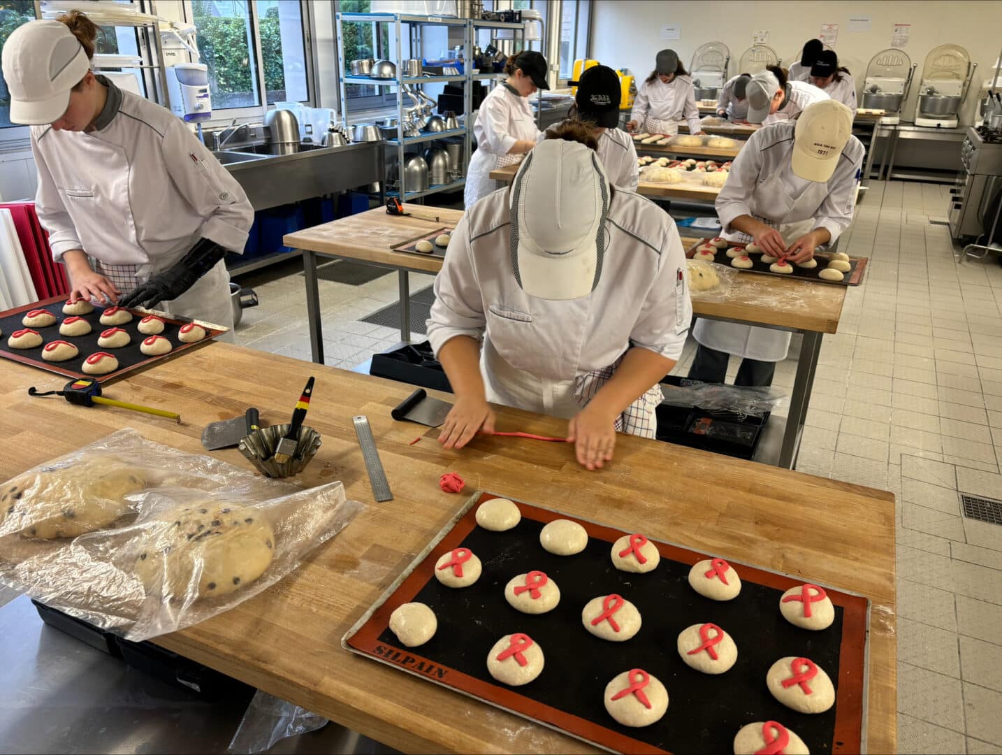 De belles réalisations en cours de boulangerie avec leur enseignant M. LOUARN pour les Secondes Métiers de l’Alimentation à l’occasion d’Octobre Rose. Bravo à tous !