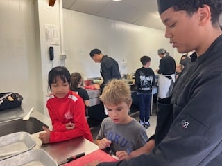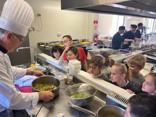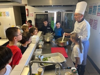 Les lycéens de première année de CAP Cuisine ont accueilli jeudi 16 octobre pendant leur TP Cuisine avec M. BÉGEL, un groupe d’élèves de CM1 de l’école primaire voisine St Joseph.