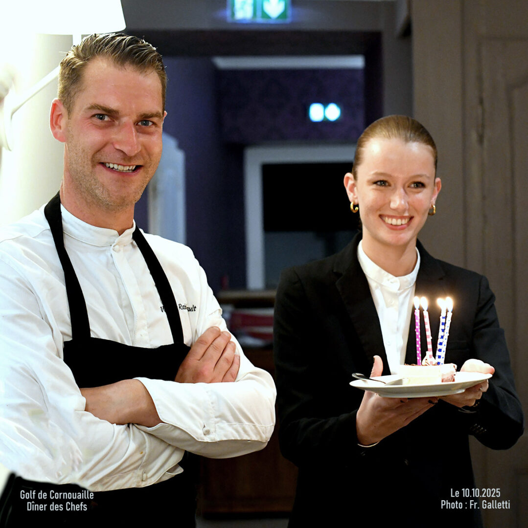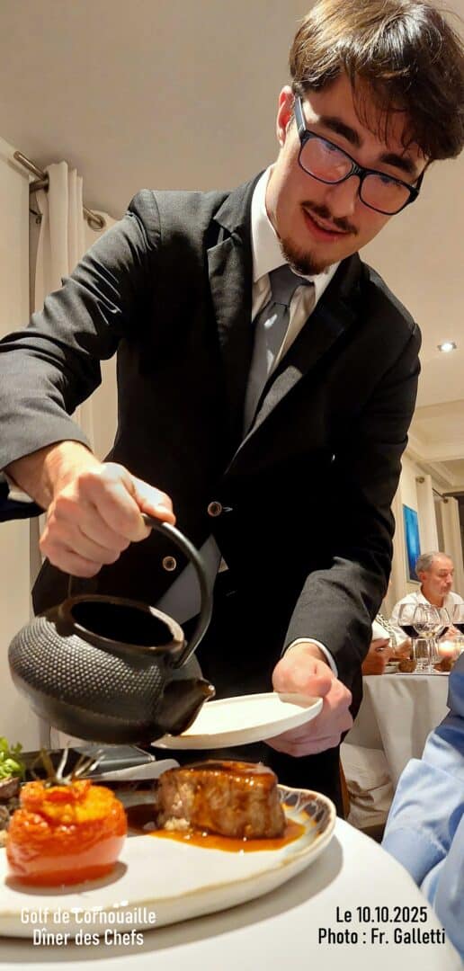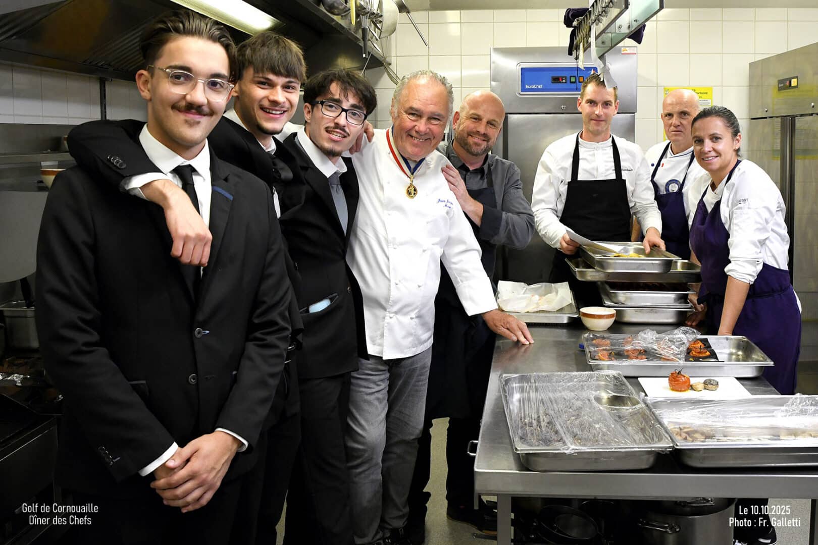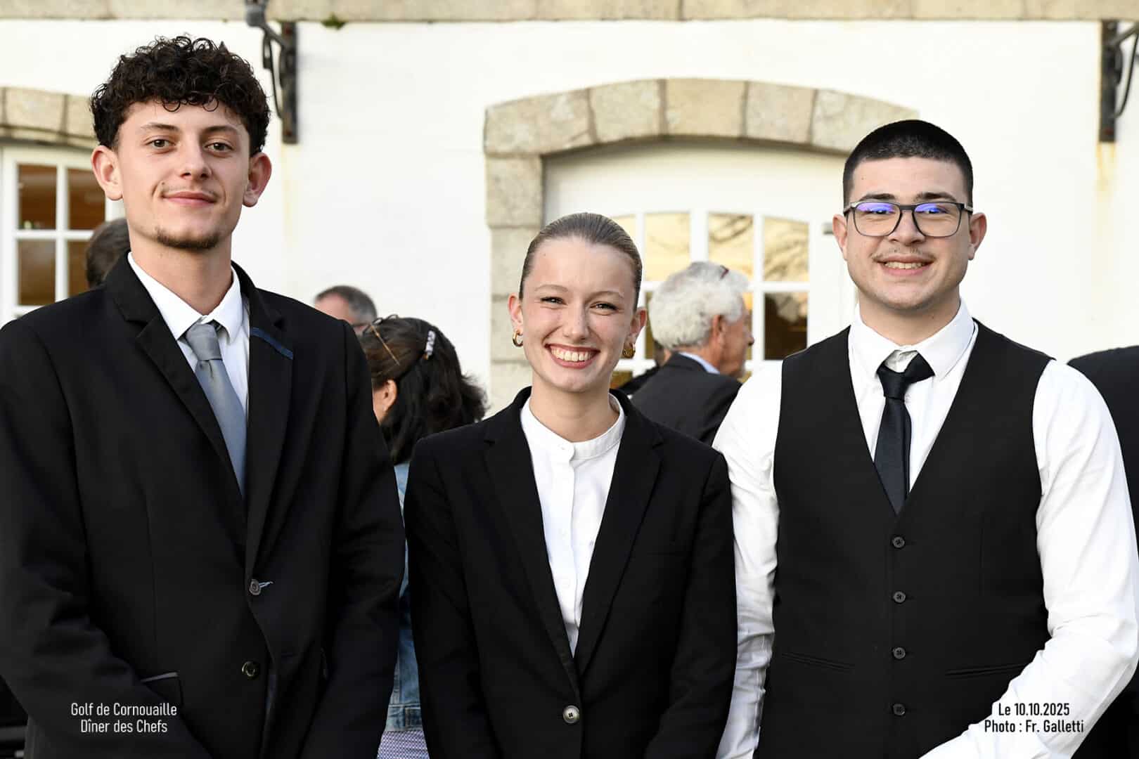Anna, Mathéo, Antoine, Esteban, Ewen et Baptiste, étudiants de 2 BTS MHR option A, Management en Hôtellerie Restauration, ont participé avec dynamisme et professionnalisme au service du DINER DES CHEFS au Golf de La Forêt Fouesnant, accompagnés de leur enseignant, M. Jean-François MENUET. Au piano des chefs de renom, Henri GAONAC’H, Pierre-Dominique CECILLON, Elisa HIVER, Ludovic LE TORC’H, Frédéric BALBOUS et Olivier COLIN… Sous la baguette du chef d’orchestre M. Jean-Jacques MASSE, Meilleur Ouvrier de France, sans oublier l’accueil des maîtres des lieux Vincent et Cécile, Restaurant LA TABLE DU MESMEUR.