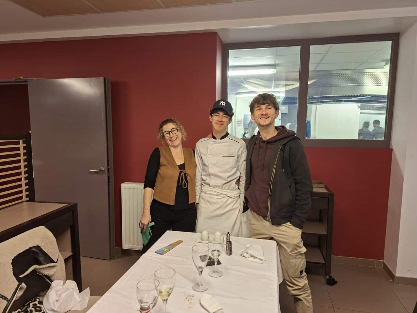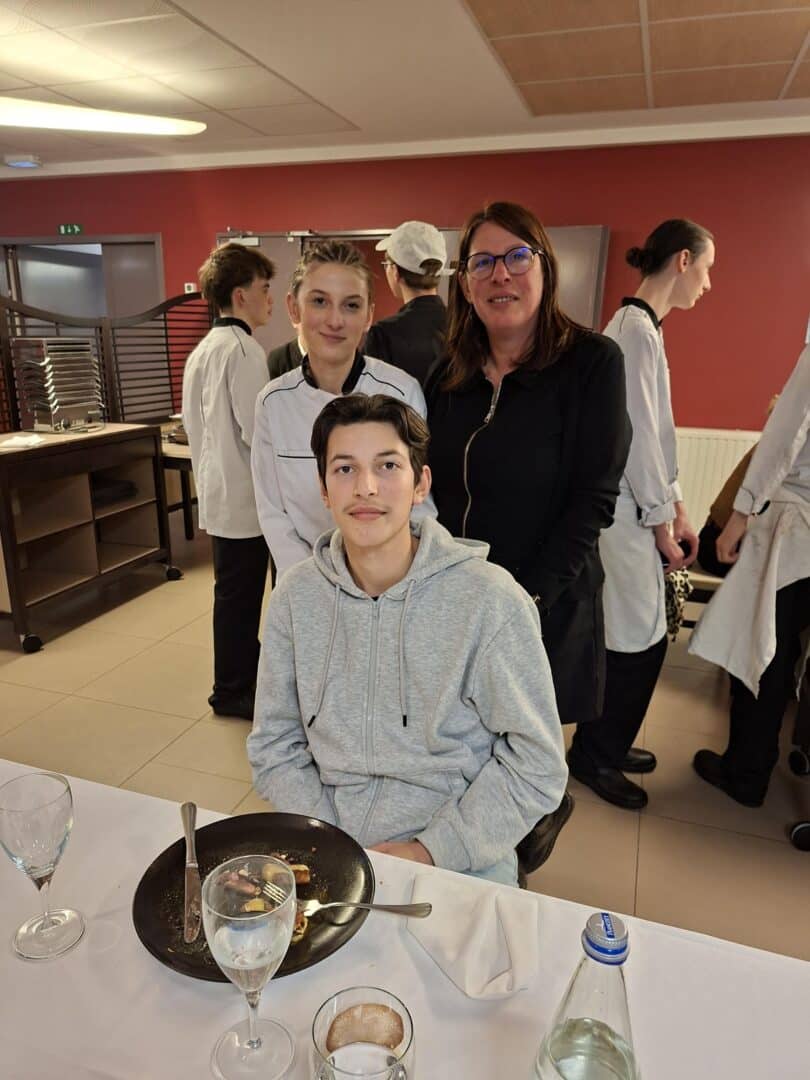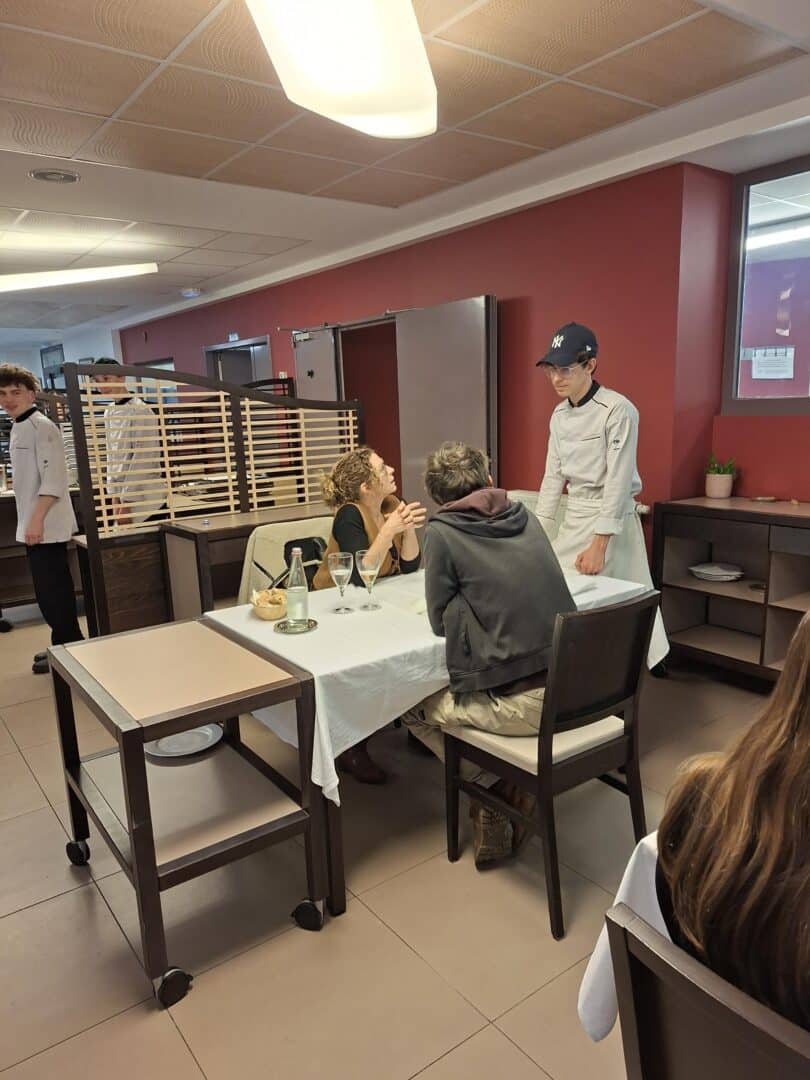 Les élèves de première STHR, tant en cuisine qu’en salle, œuvraient pour préparer le diner en l’honneur des familles, encadrés par leurs enseignants Mme LE GOFF et M. LEPLANT.