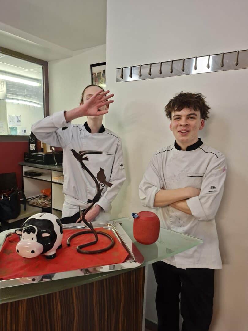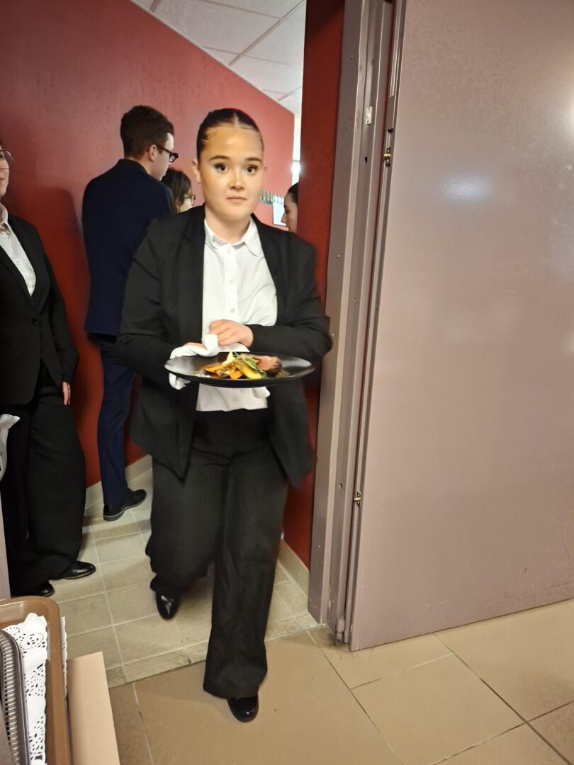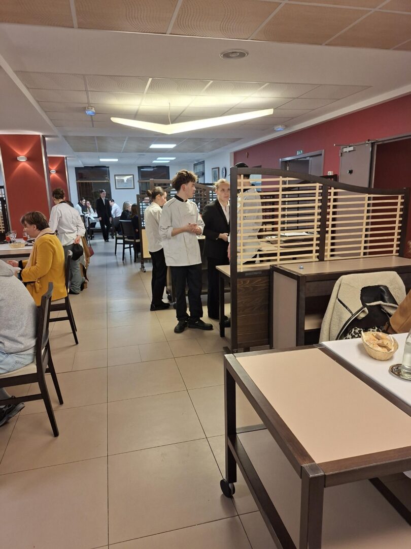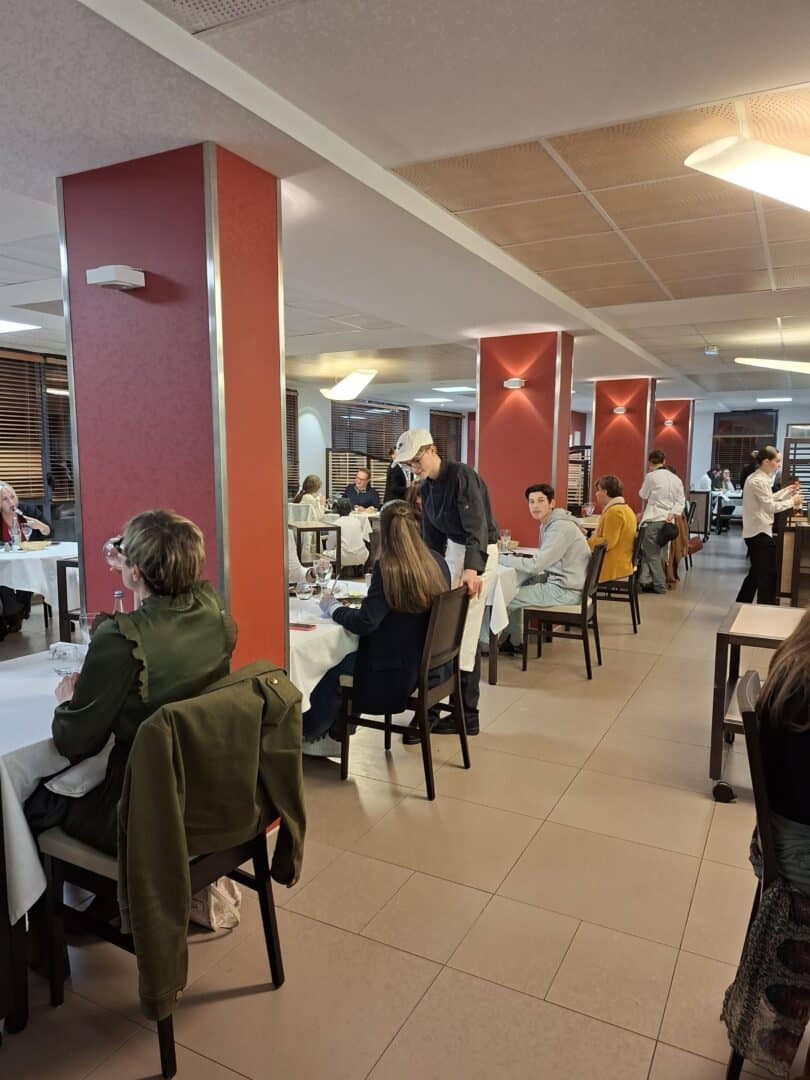 Les élèves de première STHR, tant en cuisine qu’en salle, œuvraient pour préparer le diner en l’honneur des familles, encadrés par leurs enseignants Mme LE GOFF et M. LEPLANT.