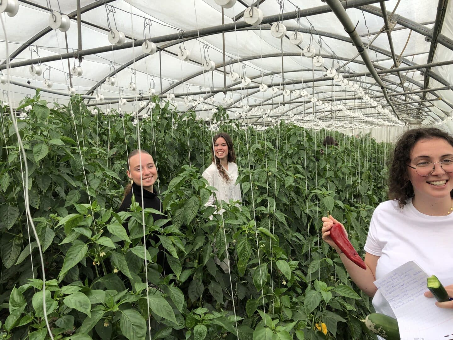 Ce lundi, 20 étudiants de Mise à Niveau Hôtellerie ont rencontré M. RIOU aux Serres de Runeven à Briec sous l’impulsion de M. Hervé FLOCHLAY, enseignant en cuisine, accompagné de M. Jean-François MENUET, leur professeur principal et enseignant en service. Ils ont ainsi pu découvrir les variétés de légumes produites, la culture pleine terre en serre ou en plein air et la lutte intégrée permettant la production de produits bio ; Ils ont également, avec délice, goûté les produits frais sans modération et apprécié aussi la valeur ajoutée du travail de maraîcher, de quoi donner mille idées pour composer une belle assiette au restaurant !