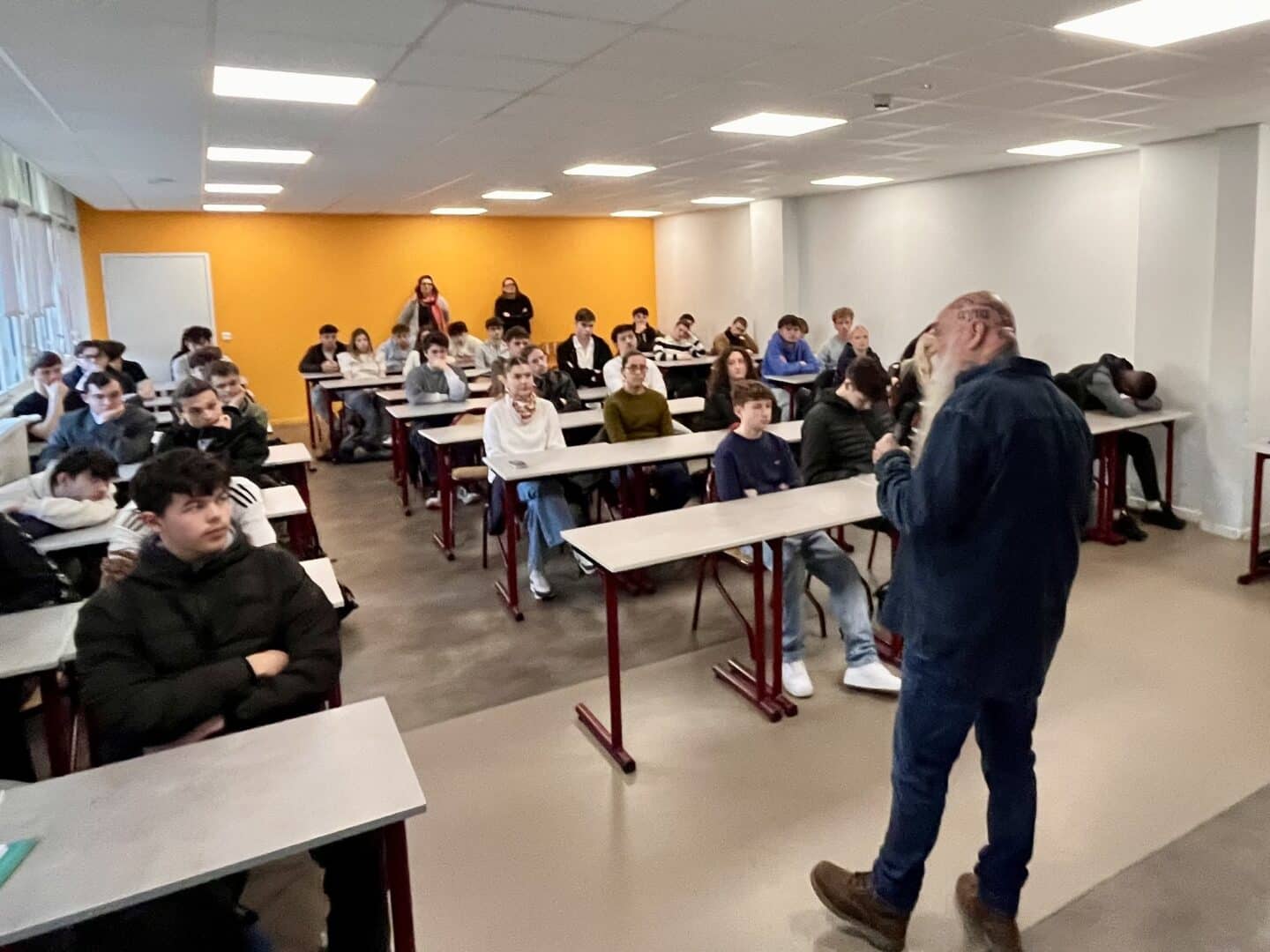 Il a été l’une des icônes du rock alternatif français des années 1990. Crâne dégarni, barbe fournie, le visage constellé de tatouages … Loin de l’atmosphère des salles de concert et plateaux de télé auxquels il était habitué, Pierre FAVRE est venu partager son parcours de vie et de foi auprès de lycéens et étudiants du lycée le Paraclet.