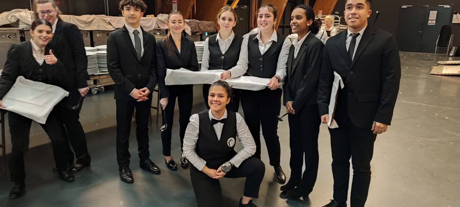 Ce mardi 6 décembre 2022, 26 élèves et étudiants du LYCEE DES METIERS DE L’HOTELLERIE RESTAURATION LE PARACLET ont participé avec succès au service du banquet annuel des Aînés de la ville de Quimper au parc des expositions de la ville.