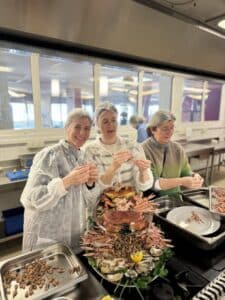 Le Lycée Le Paraclet accueille cette semaine un groupe de 8 étudiants et 3 accompagnateurs Espagnols qui participent à une semaine de mobilité Erasmus+ en France. Après le traditionnel « pot d’accueil », ils ont participé à leur premier cours : un TP de cuisine avec M. ROCUET sur la cuisson des fruits de mer et la réalisation de plateaux dignes d’un restaurant gastronomique ! Pour le dessert, M. LEFEVRE, enseignant en pâtisserie, les a fait produire un Tiramisu qu’ils ont revisité en version Bretonne. La matinée s’est conclue avec la dégustation de tous ces produits… Bravo à tous !