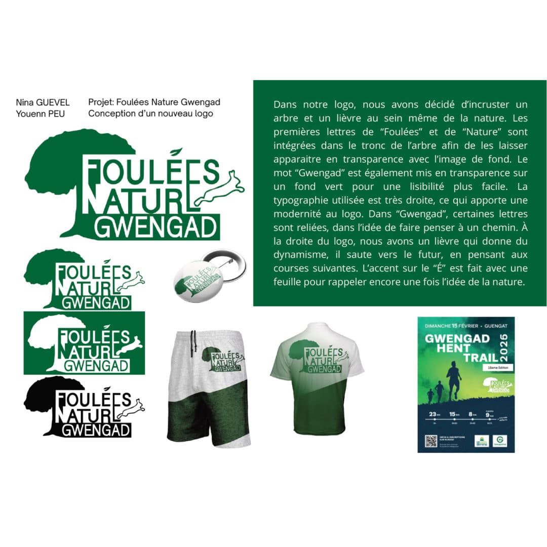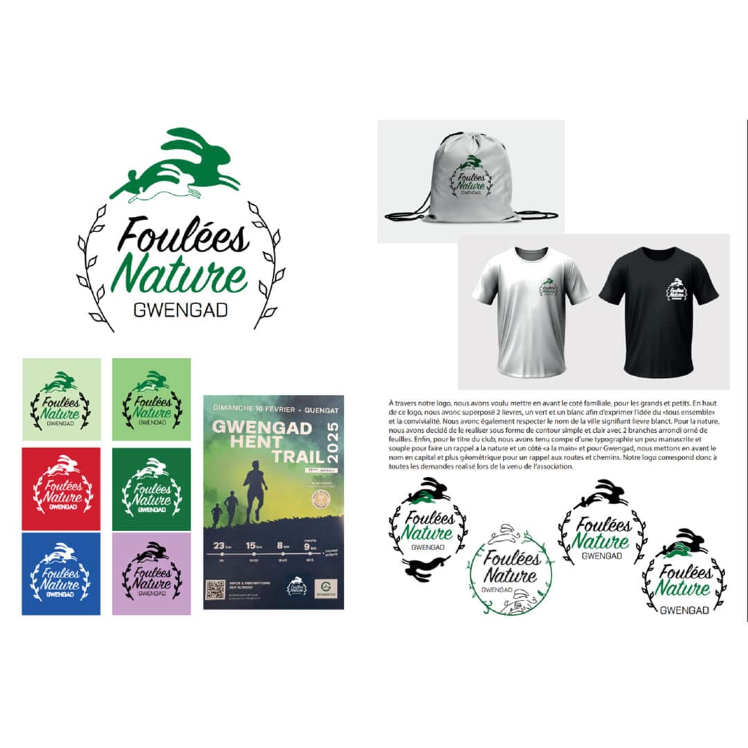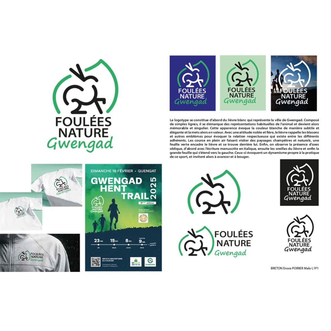 Identité graphique pour le club de running de Guengat : les foulées nature de Gwengad – Projet réel mené en Pratique de projet en 1re année du DNMADE GRAPHISME.