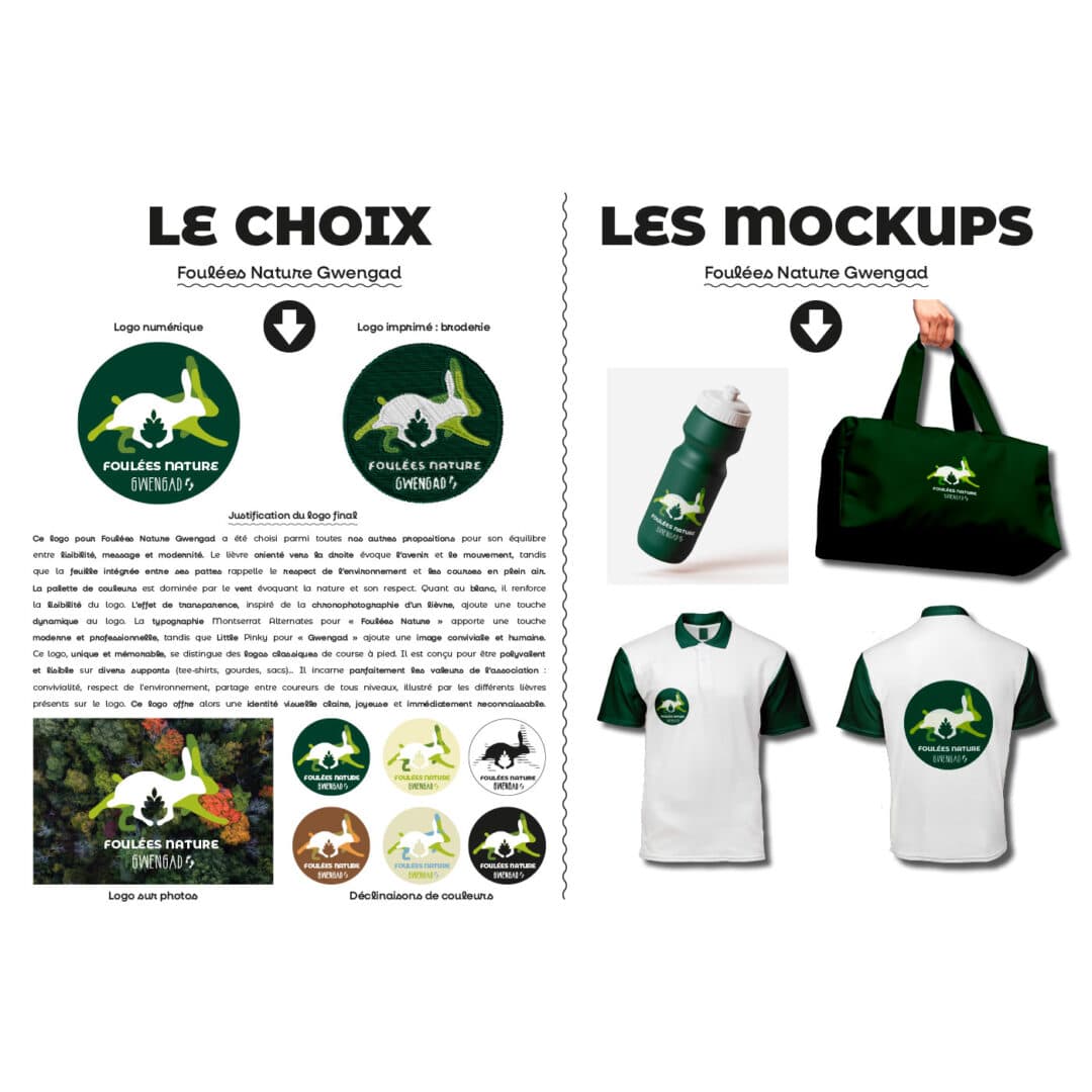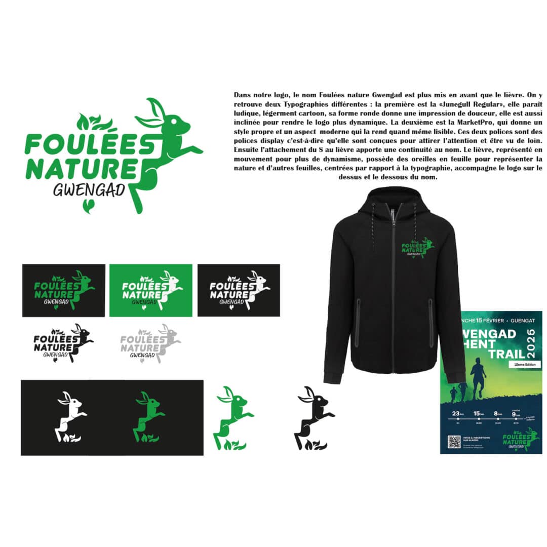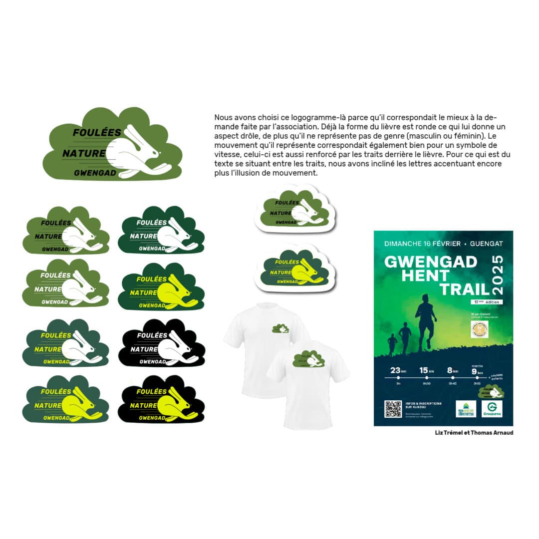 Identité graphique pour le club de running de Guengat : les foulées nature de Gwengad – Projet réel mené en Pratique de projet en 1re année du DNMADE GRAPHISME.
