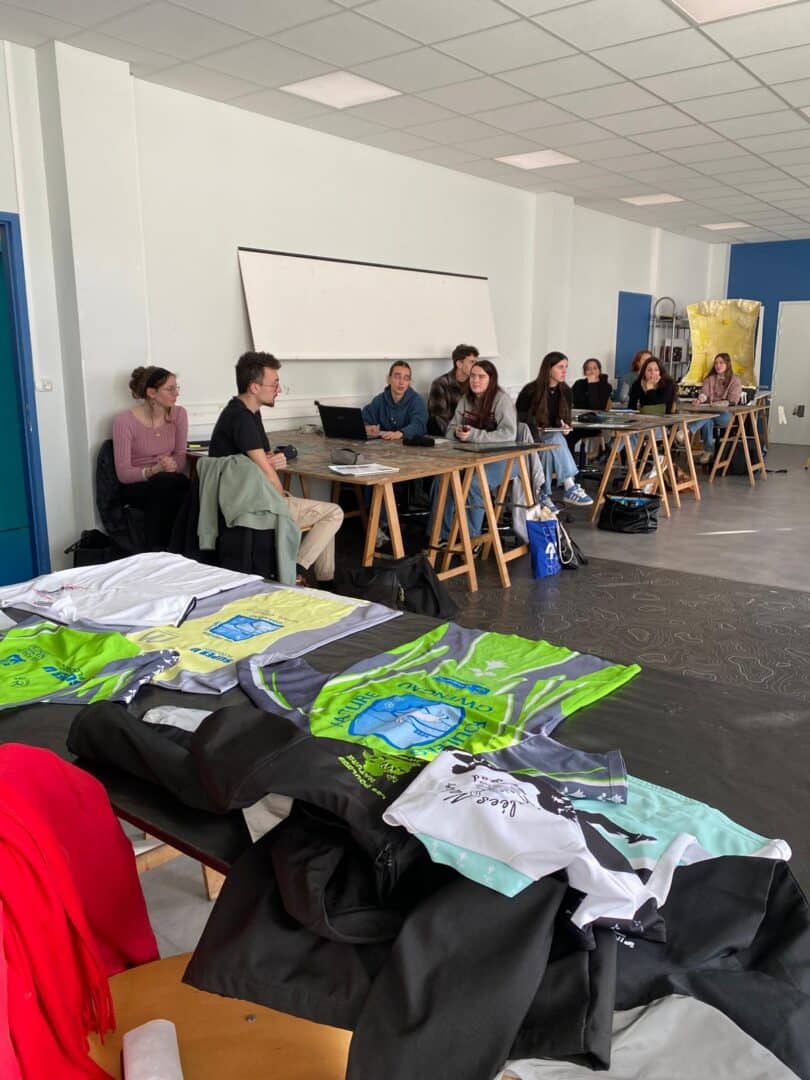 Les coureurs sont venus présenter l’histoire du club, et les différentes identités qui se sont succédées depuis sa création, à travers les maillots de course. Gwengad (en breton) a pour traduction « le lièvre blanc », référence graphique pour l’association et source d’inspiration pour les étudiants en Graphisme.