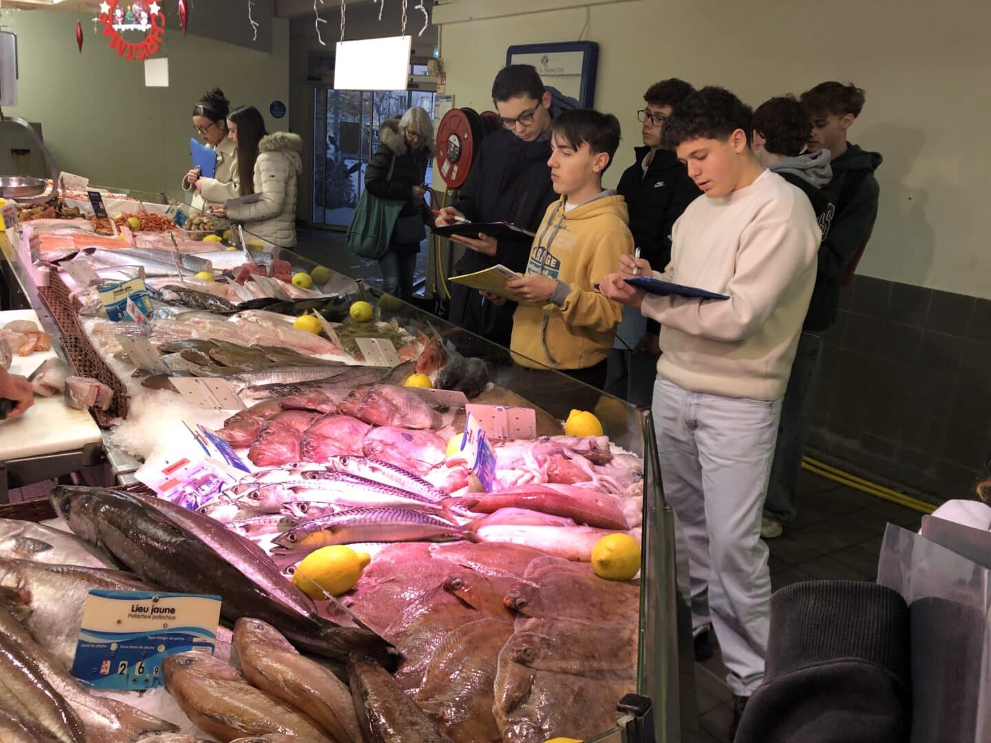 Dans le cadre des cours de STS et de STC, les élèves ont découvert les produits de la marée, la boucherie, les fruits et légumes de saison, sans oublier les pains issus de l’agriculture biologique.
