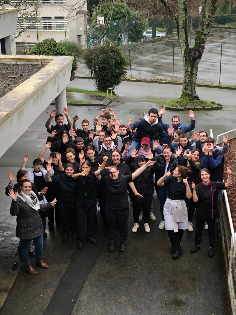 Ce repas a été préparé par des élèves de 1ère STHR (bac technologique sciences et technologies de l’hôtellerie-restauration) et leurs professeurs Mme REDAOUIA et M. LE GOFF.