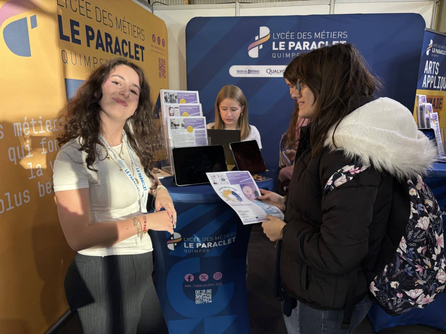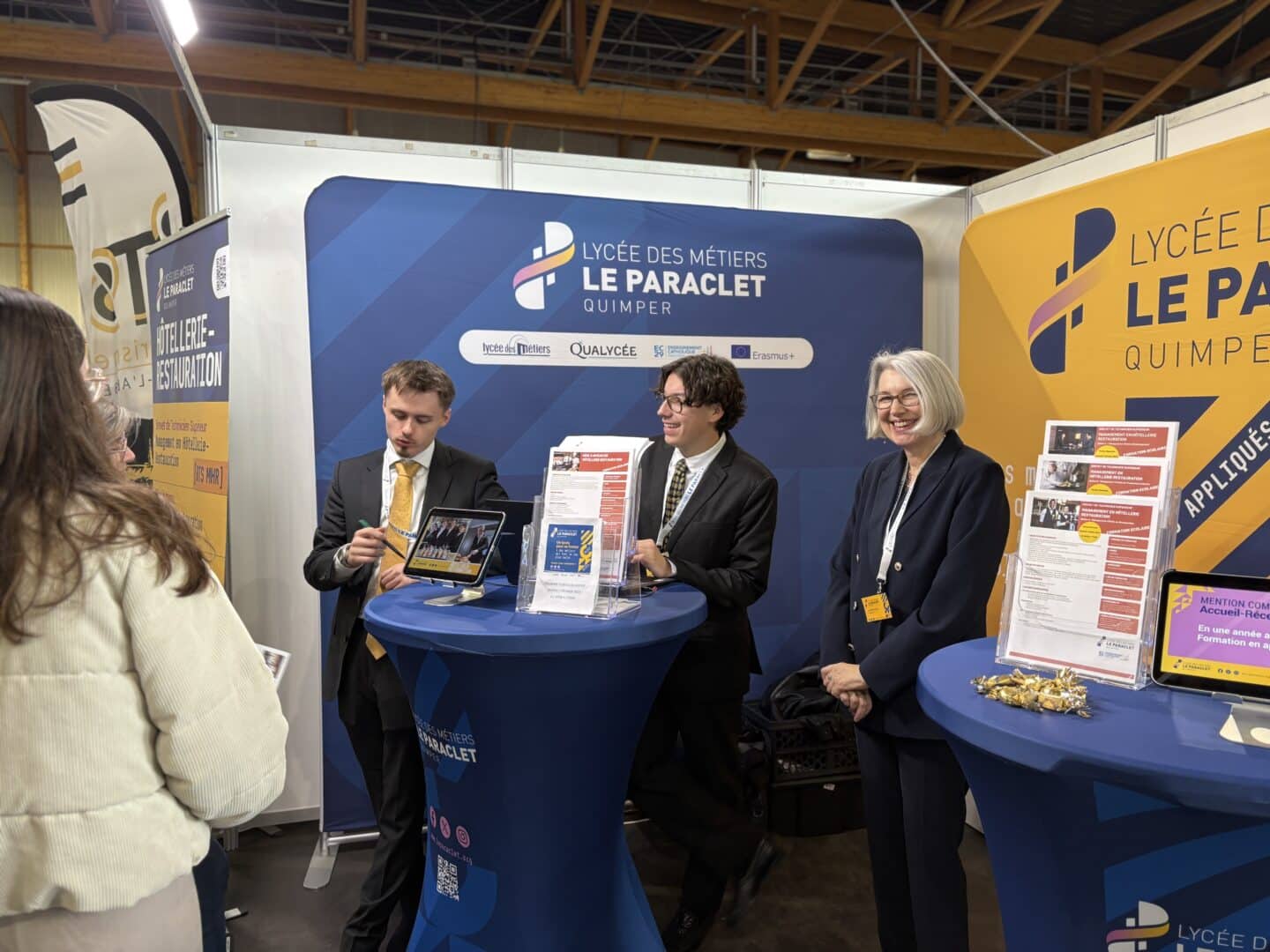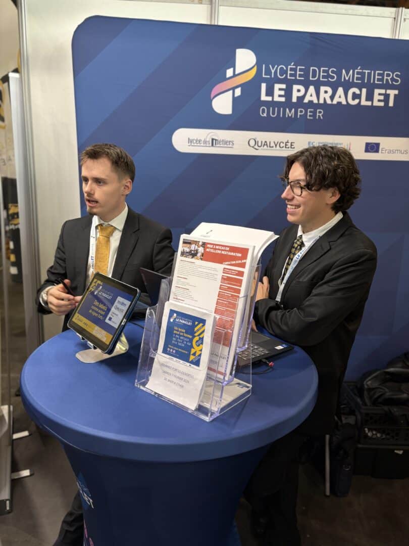 Le lycée Le Paraclet a participé avec enthousiasme au salon post-bac Azimut, rendez-vous incontournable pour les lycéens en quête d’orientation et une première pour la ville de Quimper. Ce salon nous a permis de mettre en valeur nos filières DNMADe, BTS Hôtellerie-Restauration et Misa à Niveau en Hôtellerie-Restauration, grâce à l’implication conjointe des enseignants et des étudiants venus partager leur expérience.