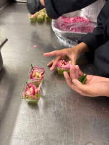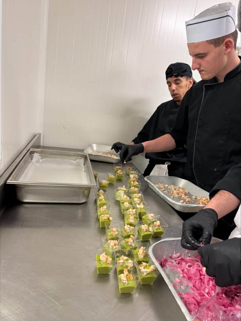 Les différentes sections du pôle hôtelier du Lycée Le Paraclet se mobilisent pour la réalisation du cocktail de l’évènement KOMZ / Parlons Design. Les élèves de cuisine, de service en salle, de pâtisserie et de boulangerie unissent leurs compétences pour proposer des créations gourmandes et raffinées, reflétant leur savoir-faire. Ce projet est une belle occasion pour nos jeunes de mettre en pratique leurs acquis dans un contexte professionnel et festif, tout en contribuant au succès de cet événement culturel.