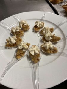 Tout commençait en salle autour d’ateliers portés sur le fromage, le flambage, la mixologie ainsi que les arts de la table. Leur matinée d’immersion se poursuit en cuisine autour d’ateliers sur les marqueurs de l’automne : figue, oignon, poire ainsi que châtaigne furent misent à l’honneur :