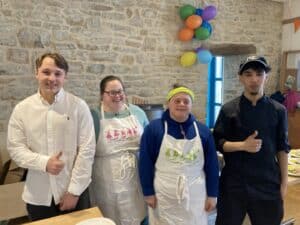 C’est aussi le défi de la rencontre, de l’accueil et de la relation avec des personnes qui ont un petit truc en plus. Les mots manquent souvent pour qualifier de manière positive ces manières d’être, ces particularités des personnes vulnérables. La veille de l’évènement, les élèves ont accueilli dans les cuisines du Paraclet un petit groupe du Caillou Blanc et quelques personnes de l’Arche à Reims. Paul, élève de 1ère année, raconte : « Je me souviens de Benoit, un jeune garçon trisomique qui est venu cuisiner avec nous le jeudi. Ce qui l’intéressait surtout c’était de goûter les plats. Il était vraiment gourmand ! Il aimait bien rire. Et son rire était très communicatif. » Lê My, élève de 2ème année, précise : « Les personnes avec un handicap sont très gentilles. J’ai remarqué que beaucoup avaient un beau sens de l’humour. Elles m’ont donné à voir que, même si elles sont en situation de handicap, elles peuvent faire plein de choses. »