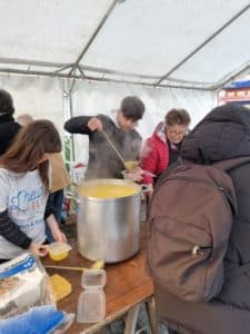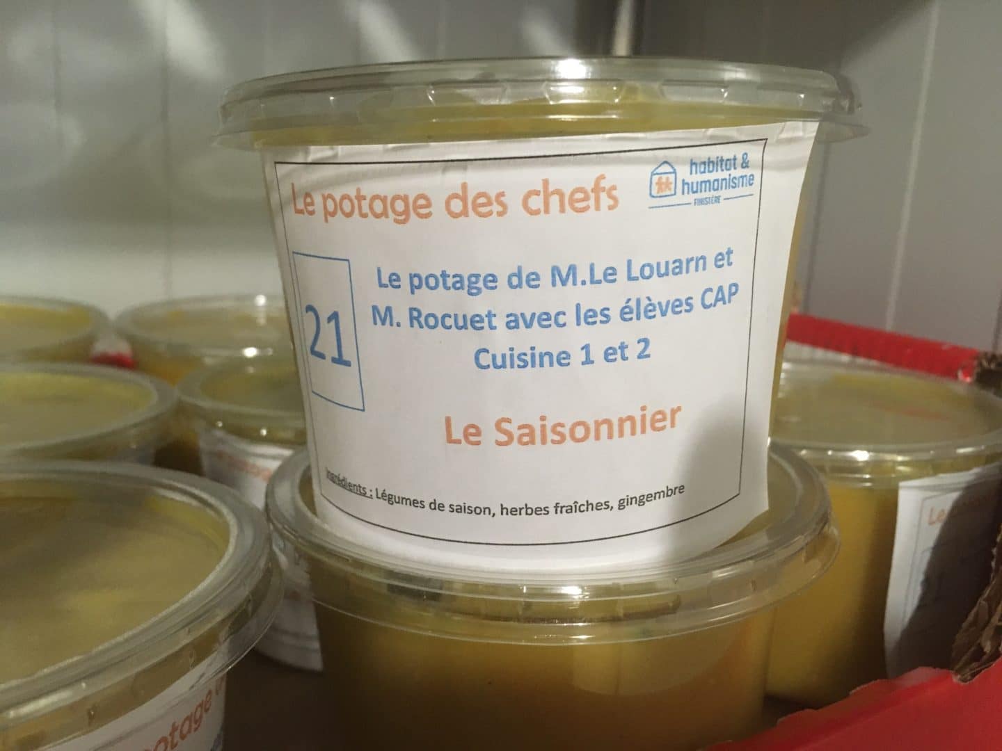 Les Quimpérois qui avaient réservé leur soupe ont pris la direction de la Place Terre-au-Duc, samedi 19 novembre 2022 au matin. Au total, 1 500 litres de soupe auront été préparés et vendus à l’occasion de la quatrième édition du Potage des chefs. Une belle réussite pour cette association. Nous sommes heureux d’avoir participé à cette opération pleine de saveurs.