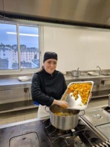 Pour limiter le gaspillage au niveau du lycée, nous avons choisi de travailler avec une partie des stocks non utilisés. D’autre part, nous avons récupéré des légumes auprès des magasins « Nous Anti-Gaspi » de Quimper et de Fouesnant. Merci à eux pour leur générosité et leur collaboration. Avec ces légumes récupérés et une petite partie du stock, nous avons réalisé trois portages : le Saisonnier, le Paimpolais et le Lentillais.