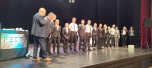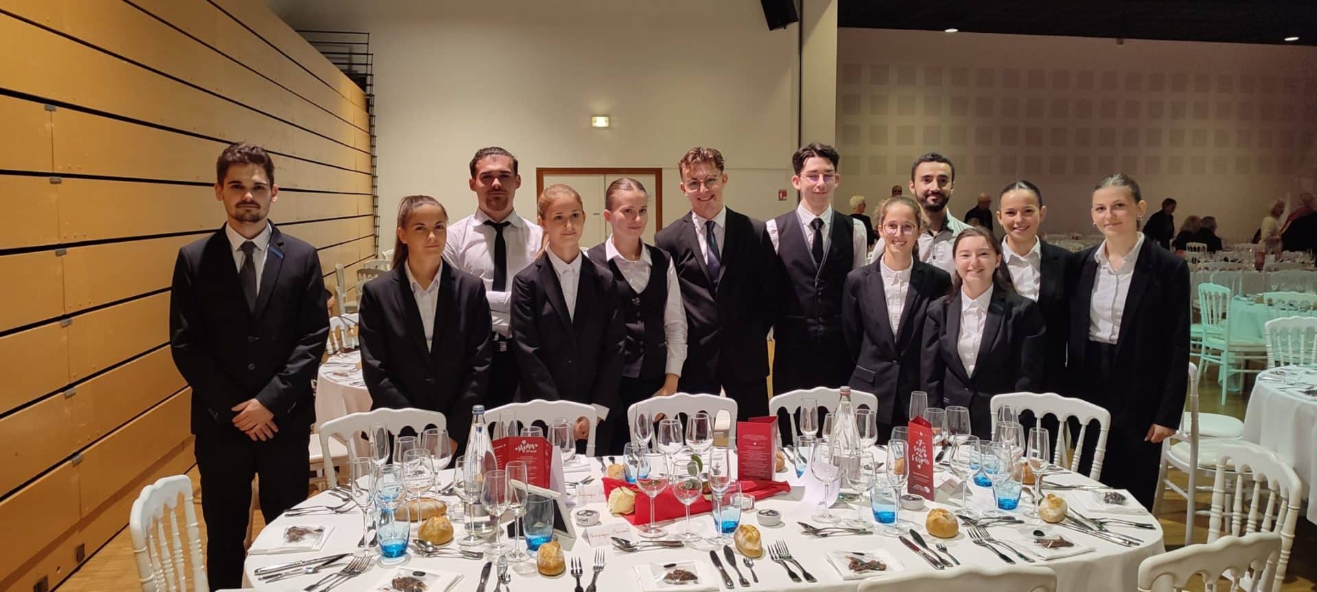 Vendredi 14 octobre 2022, 11 élèves et étudiants, Manon, Inès, Anne-Gaëlle, Emma, Maëlle, Lucie, Klervi, Loan , Raphaël, Théo et Thomas et leurs enseignants Christine, Valérie et Loïc, Anne-Marie et Rachida, Michèle, Laura et Steven ont assuré bénévolement, avec brio et avec le souci de la perfection, le service du dîner de gala proposé aux 250 convives au Nautile de La Forêt Fouesnant sous la présidence de Monsieur Yves CARIO.