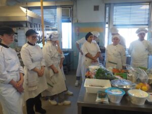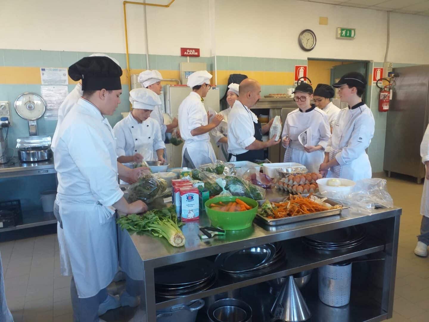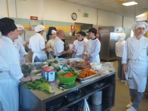 Les élèves de 2STHR en mobilité à Gênes ont pu vivre une 1/2 journée en laboratoire pour y préparer avec leurs correspondants des pâtes fraîches pour les lasagnes aux pesto dans la grande cuisine du lycée avec vue sur la mer Méditerranée ! Expérience qu’ils ne sont pas prêt d’oublier…