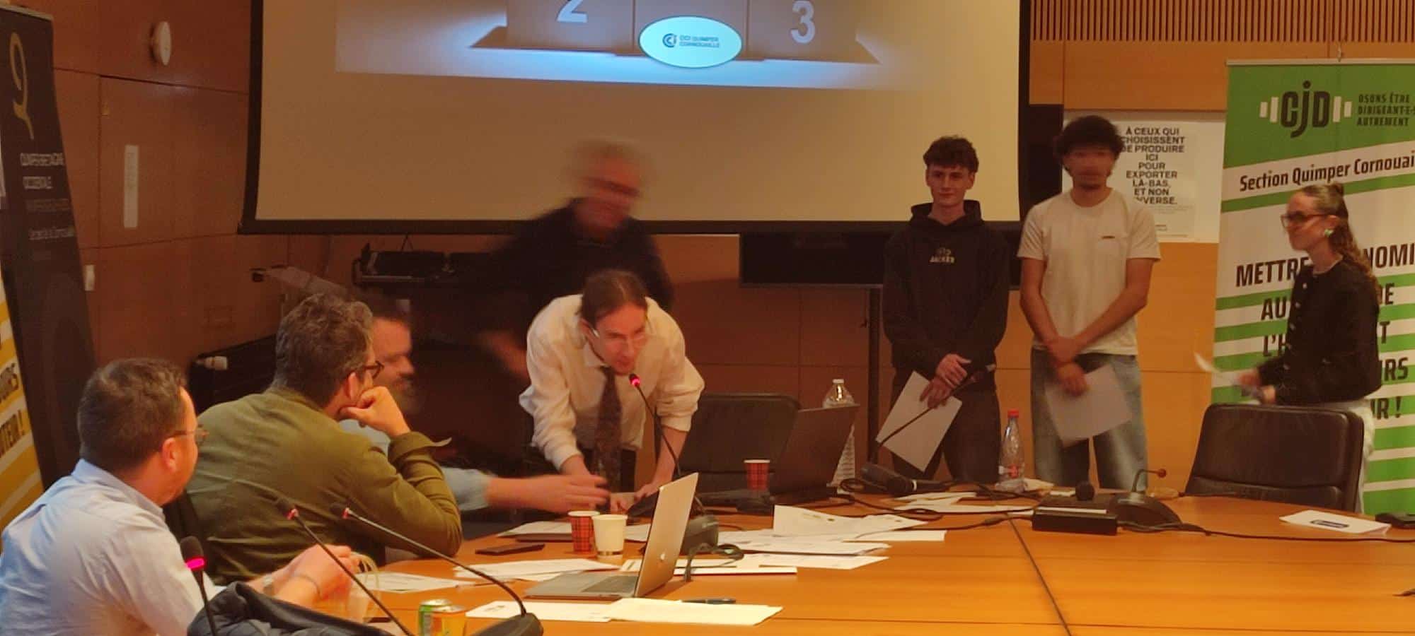 Un grand merci au CJD Quimper et tous les partenaires (CCI de Quimper, l’IPAJE, le Crédit Agricole….) pour l’organisation de cet événement de qualité et aux chefs d’entreprise qui ont accompagné les jeunes tout au long du challenge.
