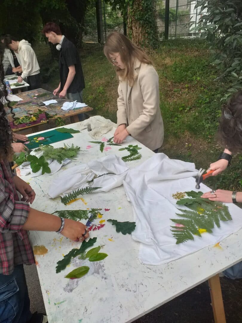 Les élèves de premières STD2A ont pratiqué la technique du TATAKI ZOME, un art japonais qui consiste à marteler des végétaux fraîchement cueillis sur un tissu naturel, en coton ou en lin. La chlorophylle se transfère directement sur le textile. Ils ont proposé différentes compositions. Bravo à tous !