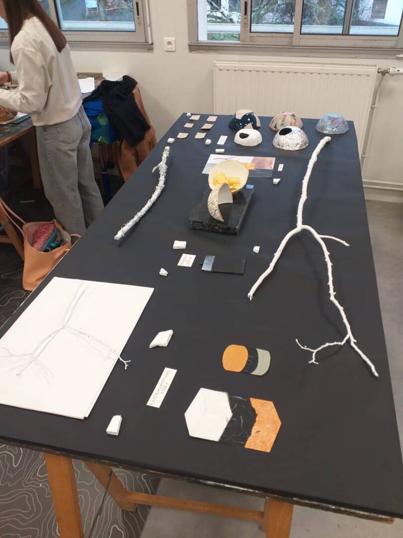 Objectif : créer des objets sur le principe du up-cycling pour revaloriser une ressource, des fragments de marbre dans le but de créer un objet pour une table du restaurant d’application du lycée. Certains sont décoratifs, d’autres permettront d’accueillir vendredi prochain une mise en bouche.