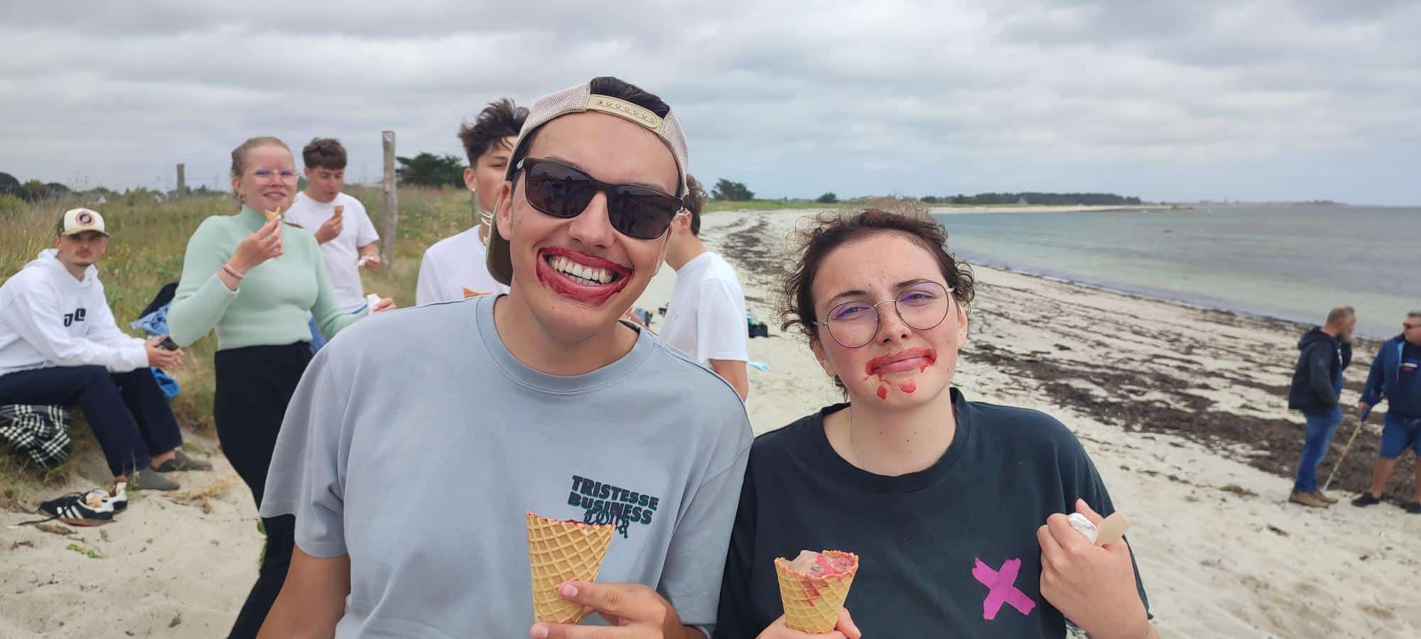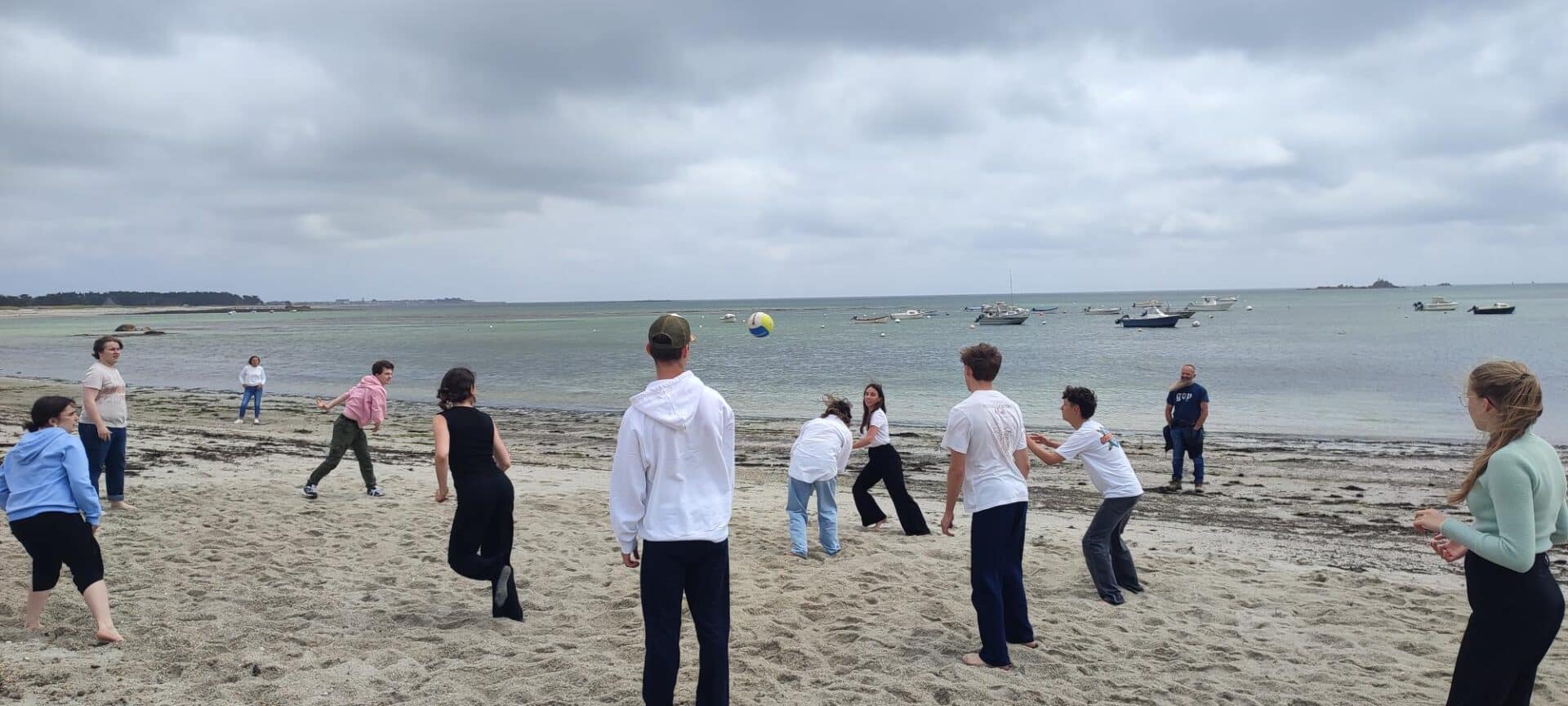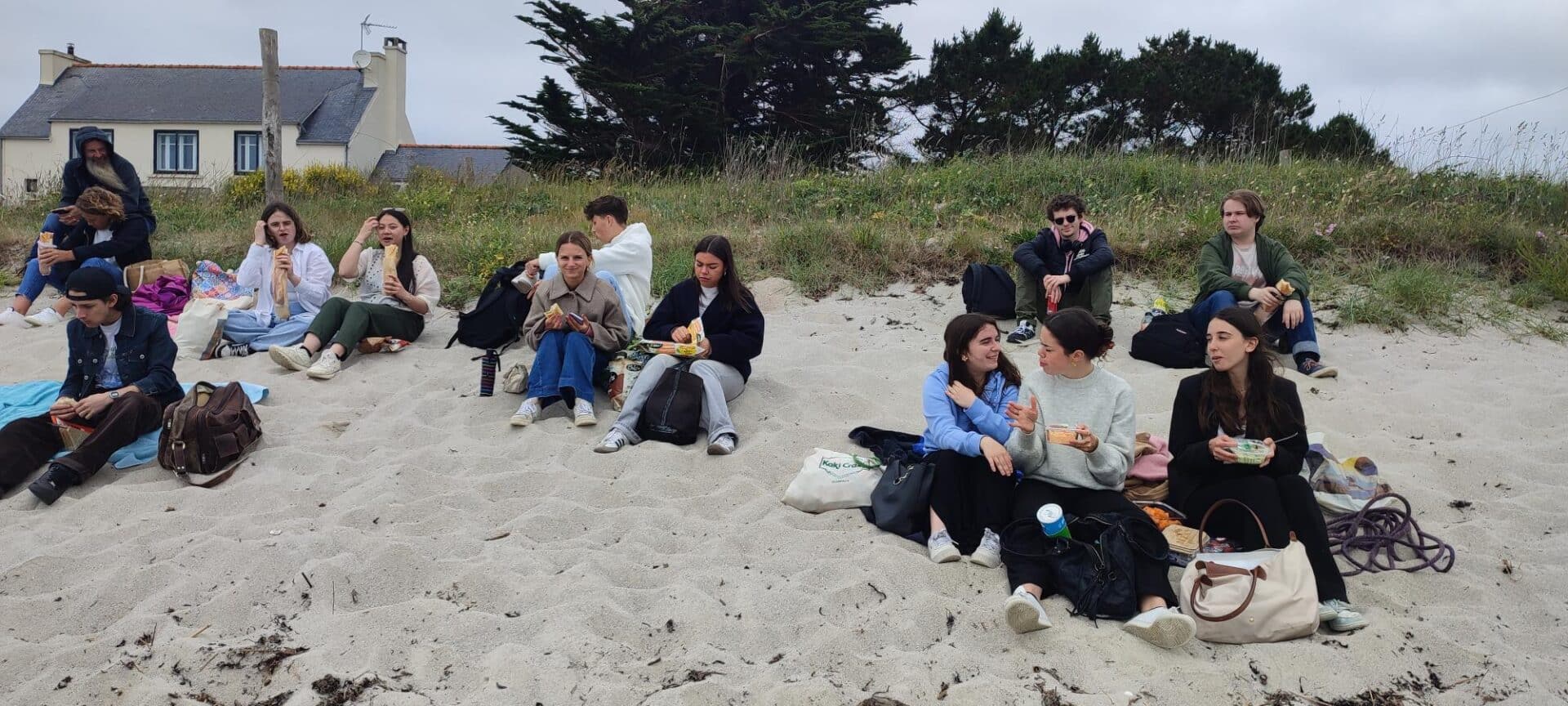 Pause déjeuner et jeux collectifs sur la plage de Kerity.