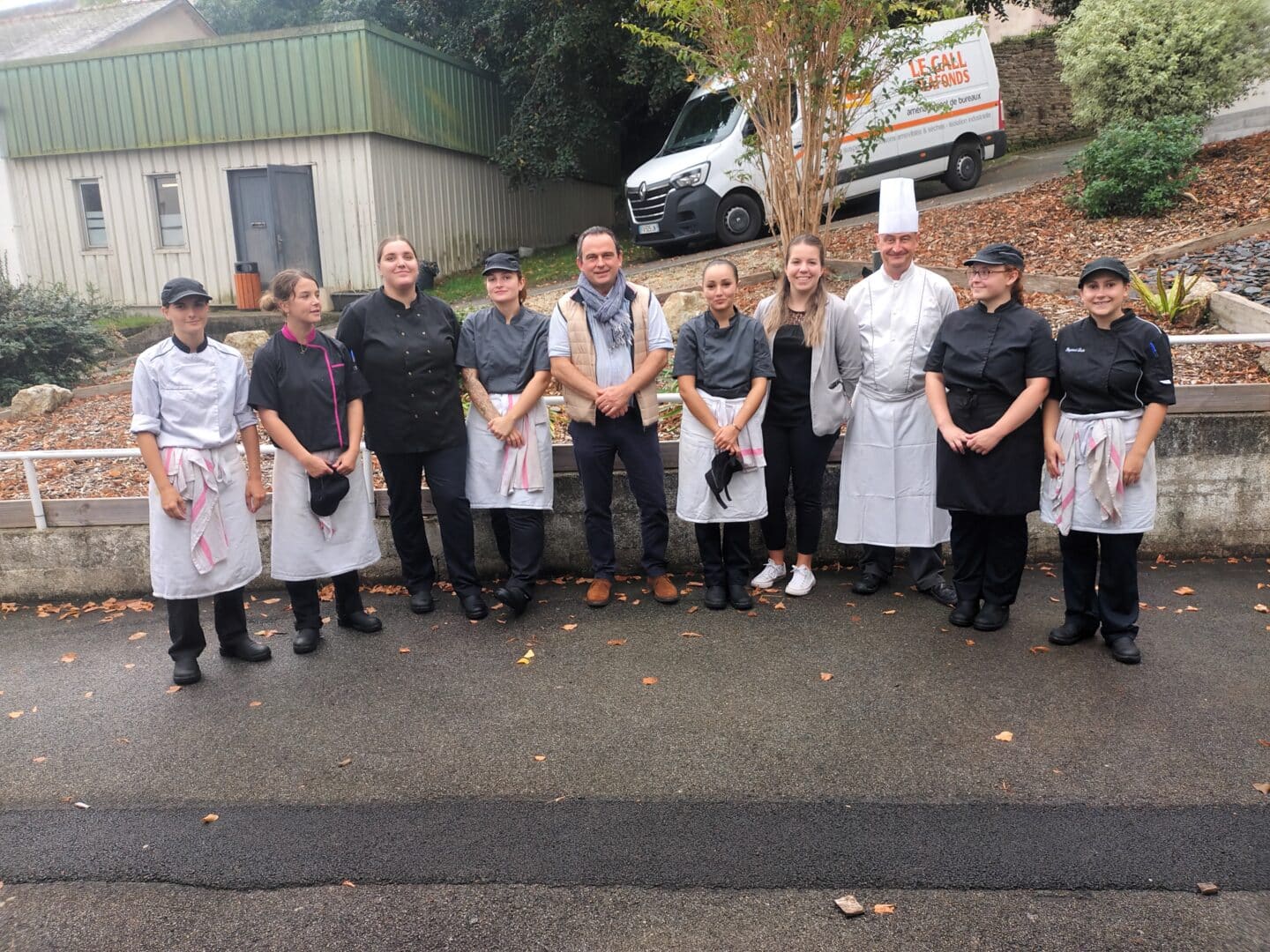 Ce jeudi 12.10.2023, sur l’invitation de M MENUET Jean-François et dans le cadre échange école-entreprise, les 28 étudiants de 2 MHR A et de 2 BTS MHR B ont apprécié la présence de M BALBOUS Frédéric, directeur d’exploitation et de MME DAIGNEAU Marjorie, chargée de recrutement, leur bienveillance, leur regard professionnel ainsi que leurs encouragements tantôt en salle et tantôt en cuisine. En effet, ces derniers ont suivi les ateliers cuisine boulangerie, pâtisserie sous la responsabilité de M GICQUAIRE et arts de la table et du service toute la journée.