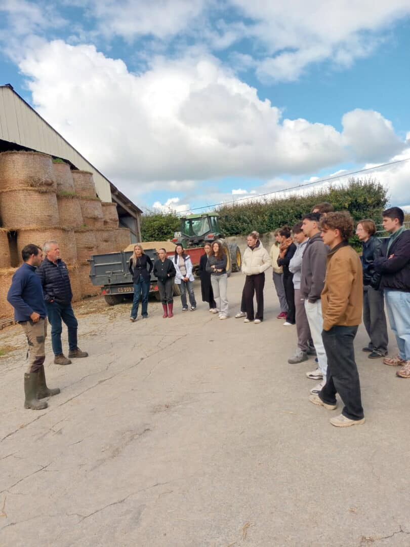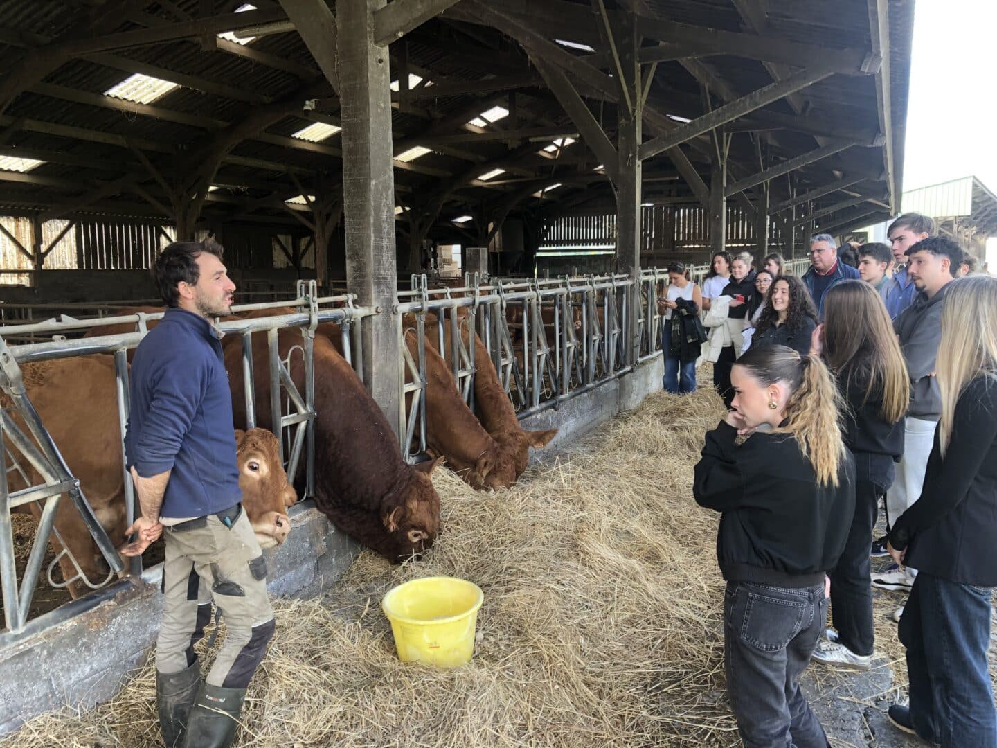 Lundi 22 septembre, Jean-François MENUET et Hervé FLOC’HLAY ont donné rendez-vous aux MAN Hôtellerie-Restauration à la ferme de Kervihan à Pluguffan où ils ont été accueillis par Sébastien PLOUZENEC, maraicher et éleveur de bovins de race Limousine. Une adresse parfaite pour découvrir et s’informer sur la culture légumière et l’élevage des animaux destinés à la boucherie, une approche préalable absolument nécessaire qui permettra à ces étudiants de première année de poser un regard professionnel et respectueux sur les produits qu’ils s’apprêtent à cuisiner et servir au restaurant.