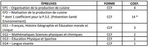 * BAC PRO Cuisine.