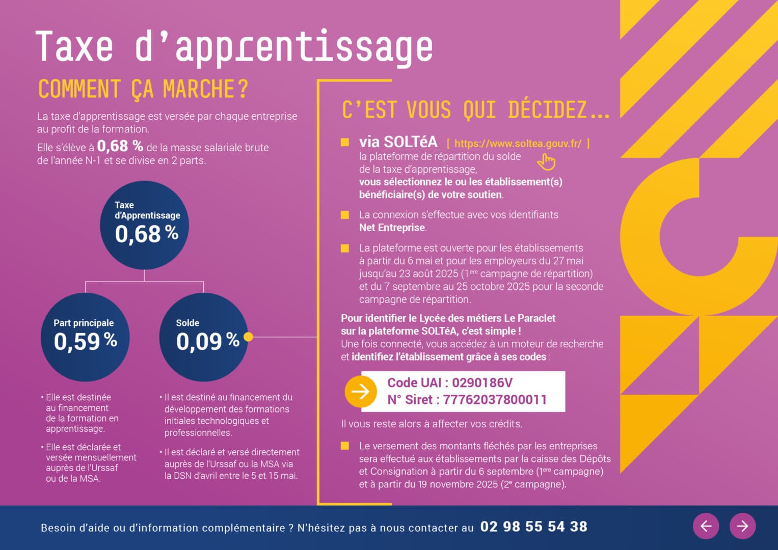 Votre contribution directe, via le versement de la taxe d’apprentissage, participera à l’épanouissement et à la formation de nos élèves qui sont aussi vos collaborateurs de demain !
