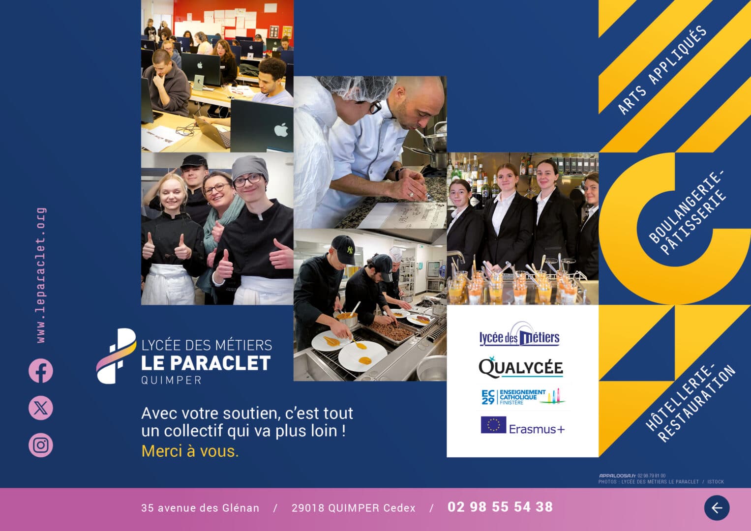 Labellisé Qualycée par la Région Bretagne, le Lycée des métiers le Paraclet, de par ses formations, est un établissement choisi par goût et conviction.